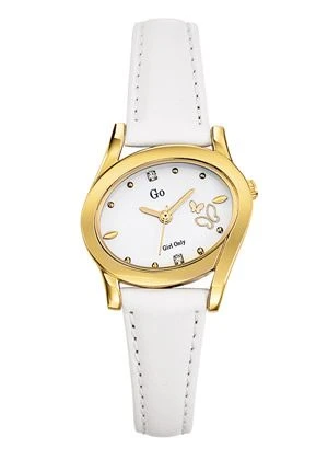Dámské hodinky Go girl only. Hodinky mají bílý ciferník, hodinovou, minutovou a vteřinovou ručku. Ciferník má rozměr 18*24mm. Pouzdro o rozměru 23*28mm je vyrobeno z kvalitní mosazi. Strojek pohánějící hodinky je bateriový značky Miyota. Kožený řemínek je široký 13 mm a má zapínání na jednoduchou sponu. Součástí balení je originální krabička s logem Go girl only.