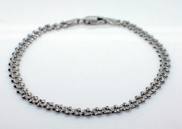 Stříbrný náramek dámský vyrobený ze stříbra 925/000. Povrch náramku je pokrytý rhodiem což mu dává jasnou barvu a brilantní lesk. Rhodium nanesené na povrchu náramku současně zamezuje přirozené oxidaci stříbra. Zapínání náramku je na karabinu. Šířka náramku 4mm.