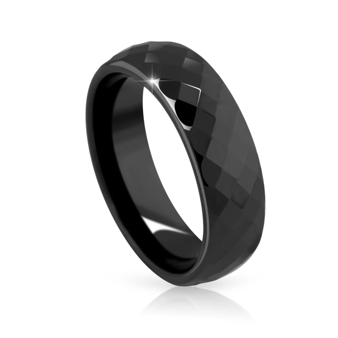 Prsten pro ženy a dívky vyrobený z keramiky. Prsten má povrch pokrytý mnoha fasetami, které odráží světlo a vytváří tak krásný lesk. Prsten je široký 6mm.