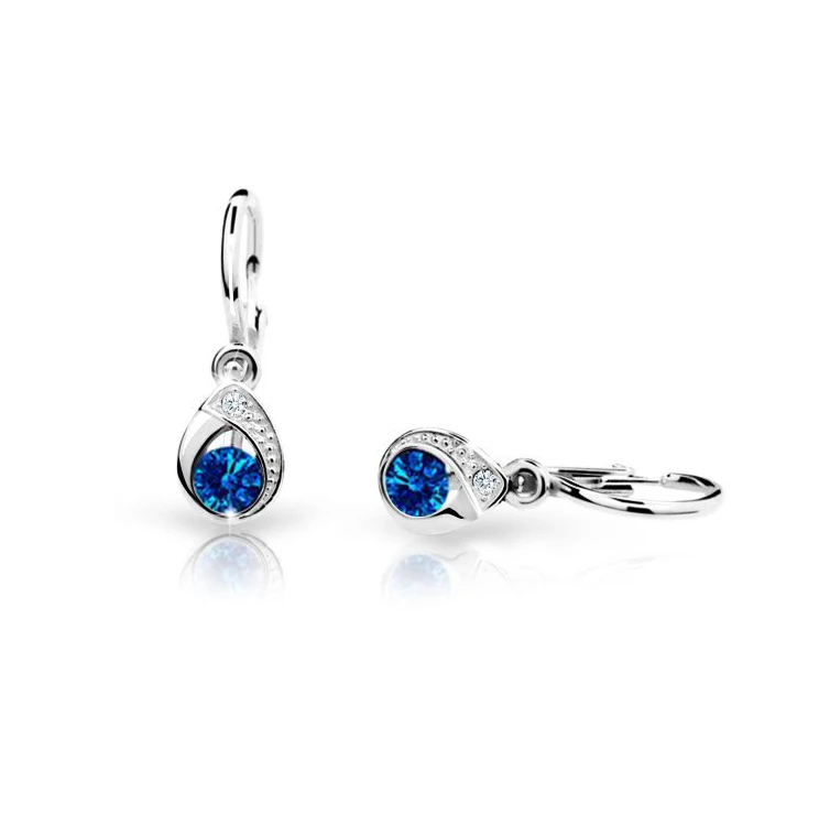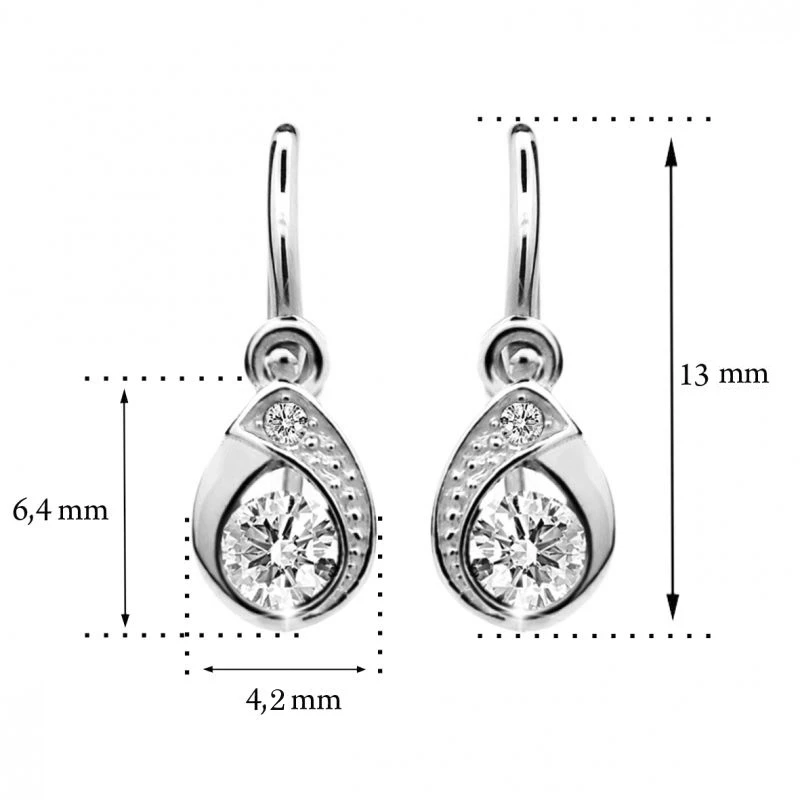 Dětské náušnice vyrobené z bílého zlata 585/1000. Náušnicové zapínání je na dětskou brizuru. Toto zapínání je zkonstruované právě pro dětské náušnice a zamezuje jeho nechtěnému rozevření a následné ztrátě náušničky. Rozměry náušniček 13mm x 6,4mm x 4,2mm najdete přehledně zobrazené na podpůrné fotografii. Náušničky jsou osazené zářivými zirkony.
