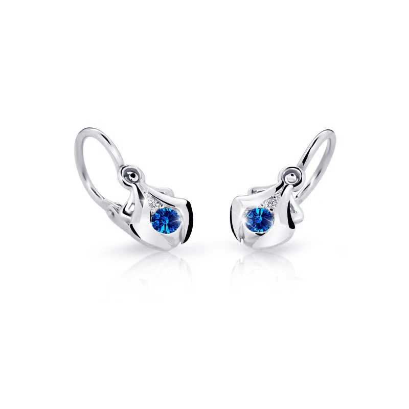 Dětské náušnice vyrobené z bílého zlata 585/1000. Náušnicové zapínání je na dětskou brizuru. Toto zapínání je zkonstruované právě pro dětské náušnice a zamezuje jeho nechtěnému rozevření a následné ztrátě náušničky. Rozměry náušniček 5,8mm x 5,7mm x 13mm najdete přehledně zobrazené na podpůrné fotografii. Náušničky jsou osazené zářivými zirkony.