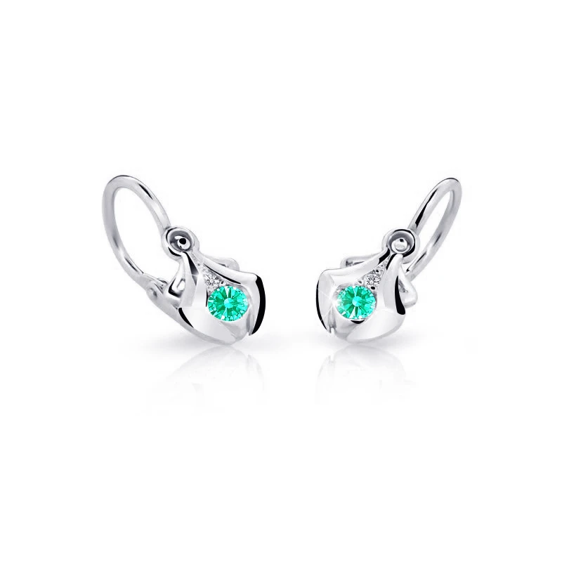 Dětské náušnice vyrobené z bílého zlata 585/1000. Náušnicové zapínání je na dětskou brizuru. Toto zapínání je zkonstruované právě pro dětské náušnice a zamezuje jeho nechtěnému rozevření a následné ztrátě náušničky. Rozměry náušniček 5,8mm x 5,7mm x 13mm najdete přehledně zobrazené na podpůrné fotografii. Náušničky jsou osazené zářivými zirkony.