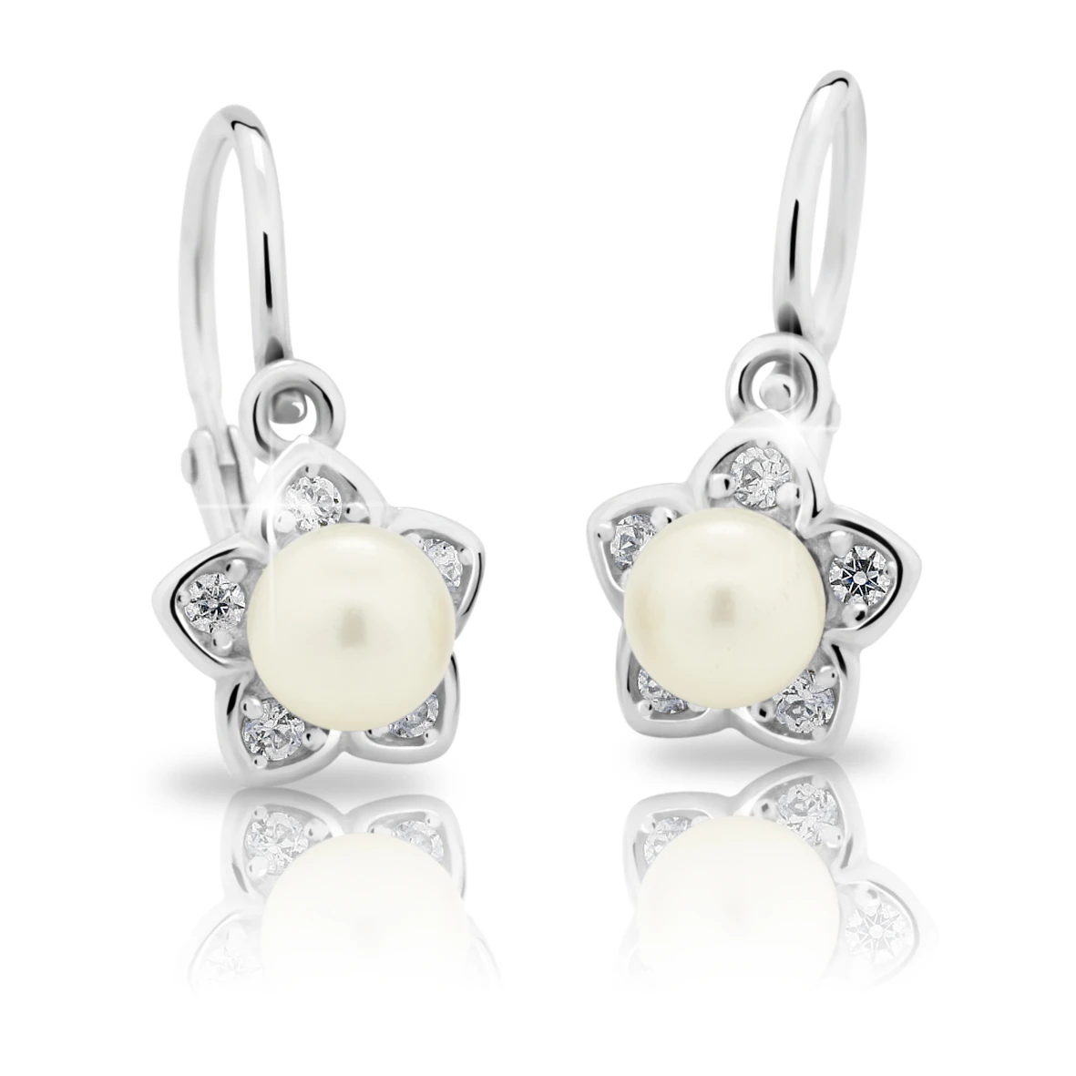 Dětské náušnice vyrobené ze stříbra ryzosti 925/1000. Náušničky jsou osazené umělými perličkami Swarovski a představují tak jedinečnou ozdobu každé malé parádnice. Dětské náušnice s náušnicovým zapínáním na bezpečnou dětskou brizuru. Ozdoba s perličkou má průměr 7mm, výška náušničky 14mm.