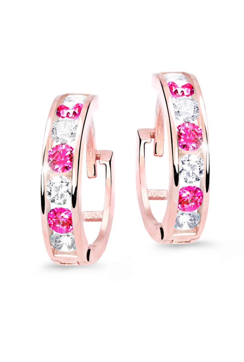 Dětské náušnice kroužky vyrobené z růžového zlata 585/000. Kruhový tvar dětských náušniček je zárukou jejich pohodlného užívání jak pro miminka tak pro větší parádnice školou povinné. Vnější průměr náušniček 12 mm, vnitřní průměr náušniček 8 mm. Kroužky jsou široké 2,8 mm. Dřík zapínání je dlouhý 5 mm. Rozměry těchto zlatých dětských náušnic najdete přehledně zobrazené na podpůrném obrázku.