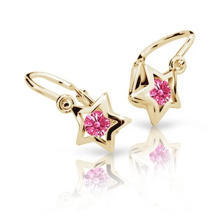 Zlaté dětské náušnice hvězdičky vyrobené ze 14 karátového zlata. Náušnice jsou navržené a vyrobené s ohledem na bezpečné a komfortní užívání pro malé parádnice od nejútlejšího věku. Bezpečnostní náušnicové zapínání náušniček na dětskou brizuru zamezuje jejich nechtěnému otevření, a následné ztrátě dětské náušničky. Hvězdička má rozměr 6,3×6,6 mm, celková „výška“ náušničky 14,4 mm.