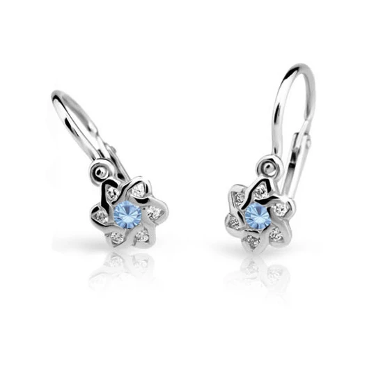Dětské visací náušnice ze zlata ryzosti 585/000. Povrch náušnic je leštěný. Náušnice s ozdobou květu. Květ je zdobený kamínky. Velikost náušnic: 14mm, rozměr ozdoby 5,8x5,2 mm. Náušnice mají bezpečnostní dětské zapínání na brizuru. Krásné dětské náušnice od českého výrobce CUTIE JEWELLERY. Rozměry náušniček najdete zobrazené na přehledné podpůrné fotografii.