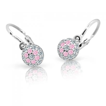Dětské náušnice z bílého zlata se zirkony. Náušnice jsou navržené a vyrobené s ohledem na bezpečné komfortní nošení pro miminka od nejútlejšího věku. Náušnicové zapínání na dětskou brizuru zamezuje snadnému otevření a následné ztrátě dětské náušničky. Ozdoba se zirkony má průměr 5,5×5,5 mm, celková „výška“ náušničky 13,6 mm. Přehledně zobrazené rozměry náušniček najdete na podpůrné fotografii.