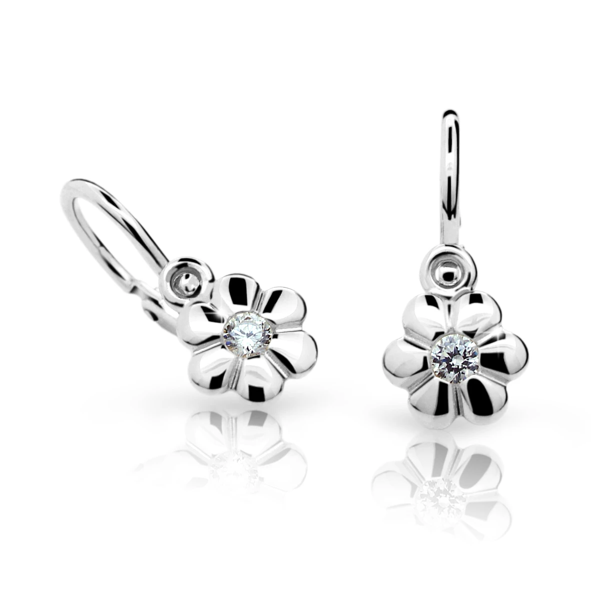 Dětské diamantové náušnice ze zlata ryzosti 585/000. Dětské náušnice se zapínáním na dětskou brizuru drží bezpečně v ouškách malých princezen od nejútlejšího věku. Průměr ozdobných kvítků 6mm, celková výška náušniček 14mm. Diamanty osazené v náušničkách jsou oceněné podle tvz. 4C tříd.