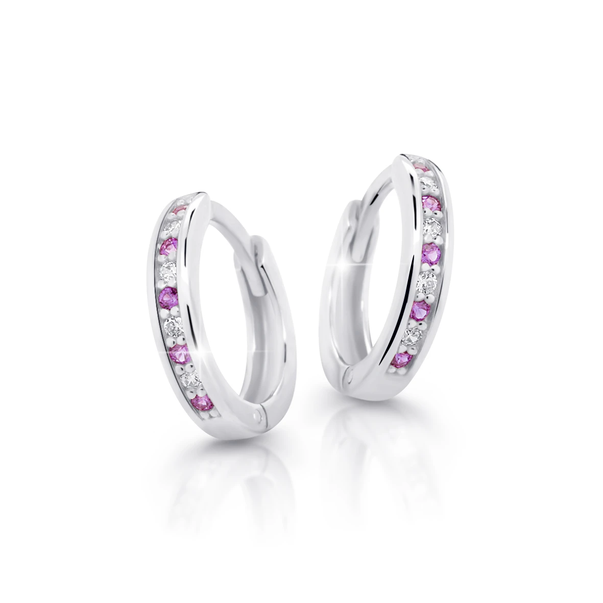 Dětské náušnice kroužky z bílého zlata C3342B-Fialová