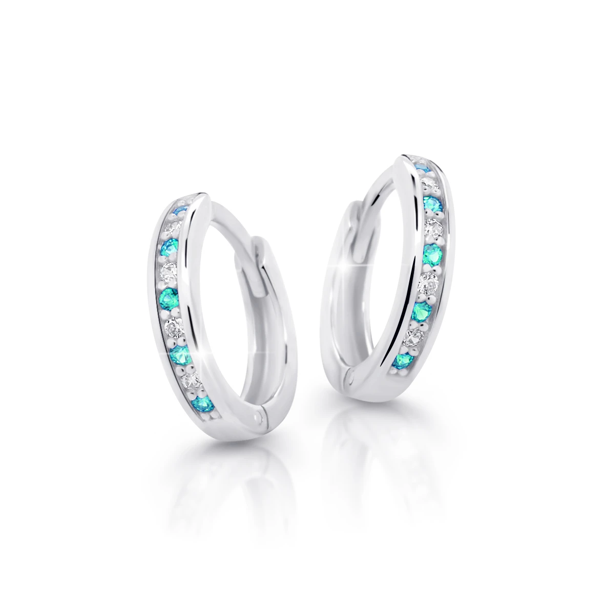 Dětské náušnice kroužky z bílého zlata C3342B-Zeleno modrá