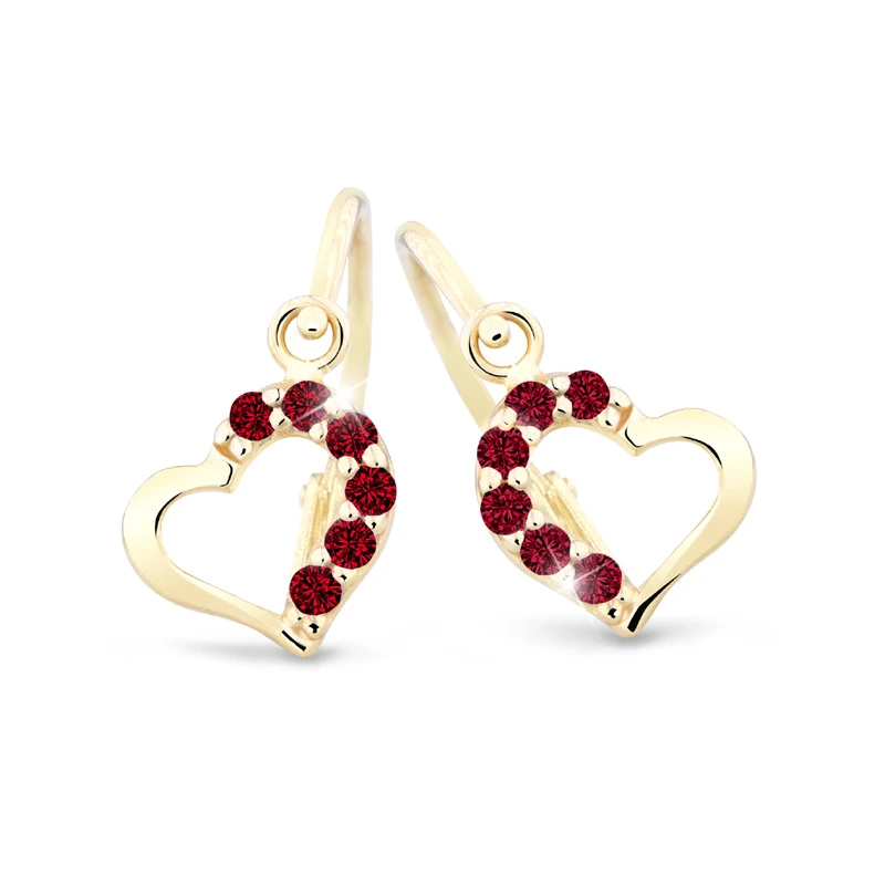 Dětské náušnice srdíčka ze žlutého 14ti karátového zlata. Náušnice jsou zkonstruované a vyrobené s ohledem na bezpečné a komfortní užívání pro princezny od nejútlejšího věku. Zapínání náušniček na dětskou brizuru zamezuje jejich snadnému otevření a následné ztrátě dětské náušničky. Srdíčko se zirkony má rozměr 7×7 mm, celková „výška“ náušničky 14 mm. Rozměry náušniček najdete přehledně zobrazené na podpůrné fotografii.