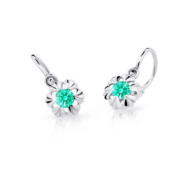 Dětské náušnice z bílého zlata C2213B-Zeleno modrá