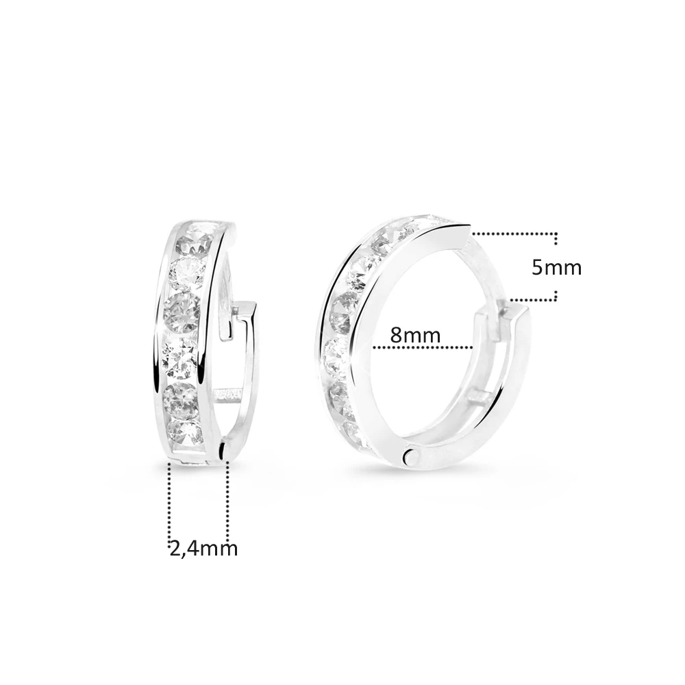 Dětské náušnice kroužky vyrobené z bílého zlata 585/000. Kruhový tvar dětských náušniček je zárukou jejich pohodlného užívání jak pro miminka tak pro větší parádnice školou povinné. Vnější průměr náušniček 12 mm, vnitřní průměr náušniček 8 mm. Kroužky jsou široké 2,8 mm. Dřík zapínání je dlouhý 5 mm. Rozměry těchto zlatých dětských náušnic najdete přehledně zobrazené na podpůrném obrázku.