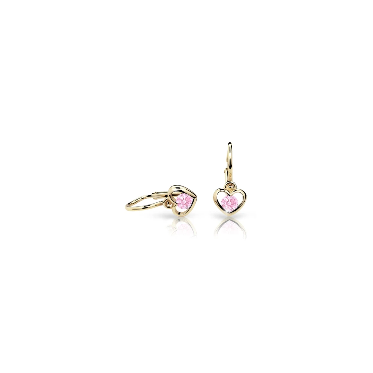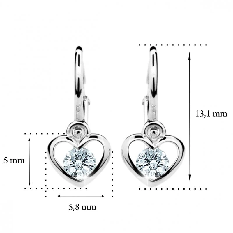 Zlaté dětské náušnice srdíčka se zirkonem. Dětské náušnice se zapínáním na dětskou brizuru. Náušnicové zapínání "dětská brizura" zamezujeme snadnému rozevření zapínání a následné ztrátě náušničky. Rozměry náušniček naleznete zobrazené na podpůrné fotografii.