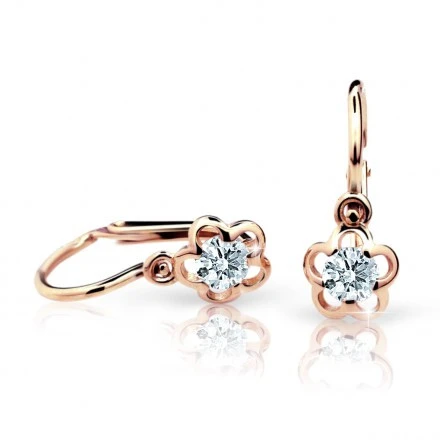 Zlaté dětské náušnice kytičky vyrobené ze 14. ti karátového zlata. Náušničky jsou navržené a vyrobené s ohledem na komfortní a bezpečné užívání pro princezny od nejútlejšího věku. Zapínání náušniček na bezpečnou dětskou brizuru zamezuje jejich snadnému otevření a následné ztrátě dětské náušničky. Rozměr kytičky 5,5×5,5 mm, celková „výška“ náušničky 13,9 mm.