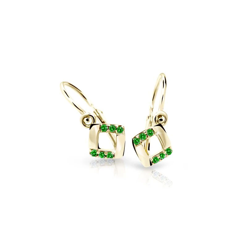 Zlaté dětské náušnice ze zlata 585/000. Nádherné dětské naušničky se zapínáním na dětskou brizuru, která dětem zabraňuje v jejich snadném otevření. Luxusní vzhled dětských náušnic je podtržený zářivými kamínky. Všechny dětské šperky od Cutie Jewellery jsou vyráběné České republice a dnes jsou tyto šperky známé po téměř po celém světě. Tak jako všechny zlaté šperky jsou také tyto náušničky pro miminka opuncované dle puncovního zákona. K náušničkám patří originální krabička Cutie Jewellery.