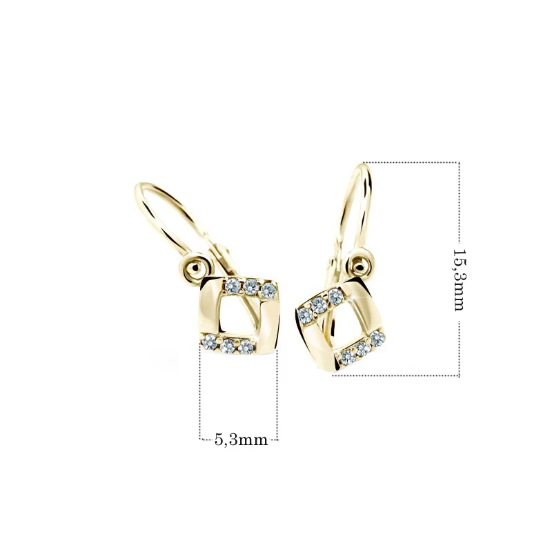 Dětské náušnice ze žlutého zlata ryzosti 585/000. Povrch náušnic je leštěný. Náušnice s ozdobou. Rozměr náušnic najdete přehledné zobrazený na podpůrné fotograffi. Náušnice mají bezpečnostní dětské zapínání. Krásné dětské náušnice od českého výrobce Cutie Jewellery ![]()