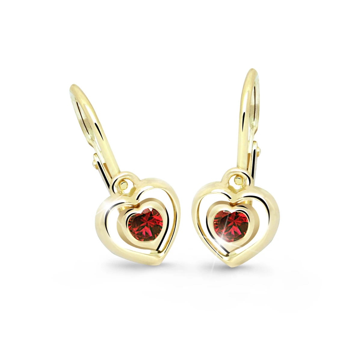 Dětské zlaté náušnice ze žlutého zlata 585/000. Náušničky pro děti ozdobené třpytivým zirkonem. Náušnice pro miminko se zapínáním na bezpečností dětskou brizuru. Rozměr ozdobného srdíčka s kamínkem 6x6 mm, celková výška náušniček 14 mm. Rozměry náušniček najdete přehledné zobrazené na podpůrné fotografii.