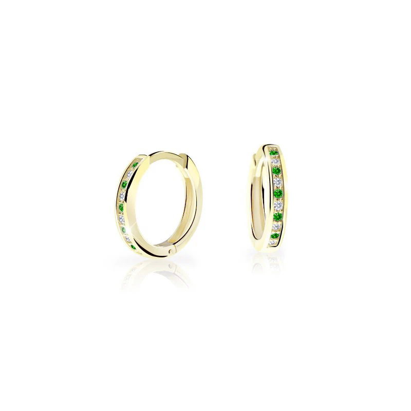 Dětské náušnice kroužky ze žlutého zlata. Praktický kruhový tvar dětských náušniček je zárukou jejich pohodlného užívání. Vnitřní průměr náušniček 9mm, vnější průměr 12mm. Náušničky jsou široké 2,0 mm. Dřík zapínání je dlouhý 5 mm.