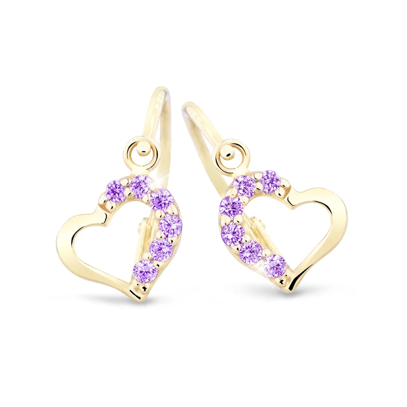 Dětské náušnice zlaté srdíčka C2757Z-Fialová