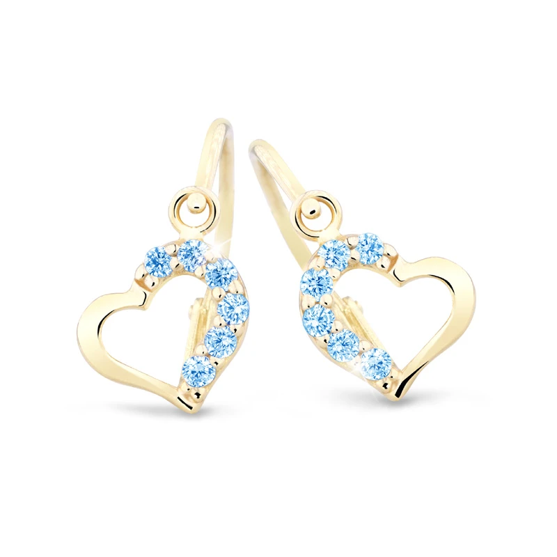 Dětské náušnice zlaté srdíčka C2757Z-Světle modrá