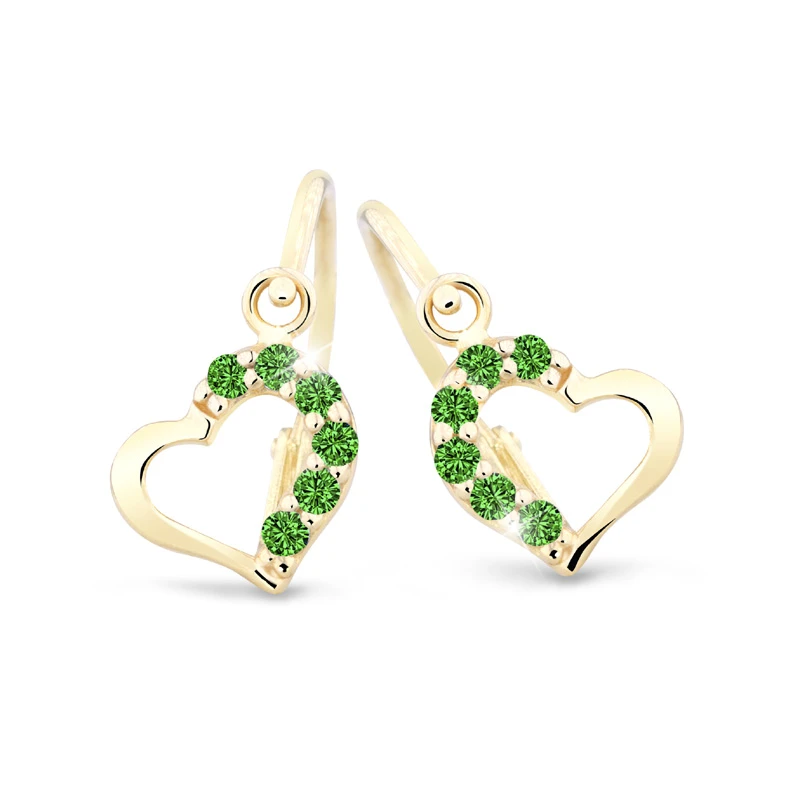 Dětské náušnice zlaté srdíčka C2757Z-Zelená