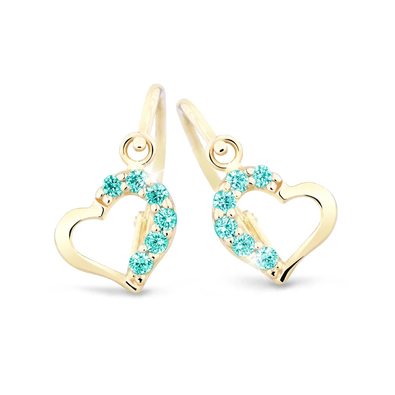 Dětské náušnice zlaté srdíčka C2757Z-Zeleno modrá