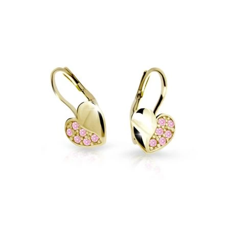Náušničky pro děti ze zlata 585/000. Krásné dívčí náušnice se zapínáním na klapku. Luxusní vzhled dětských náušnic je podtržený zářivými kamínky. Všechny dětské šperky od Cutie Jewellery jsou vyráběné České republice a dnes jsou tyto šperky známé po téměř po celém světě. Tak jako všechny zlaté šperky jsou také tyto náušničky pro miminka opuncované dle puncovního zákona. K náušničkám patří originální krabička Cutie Jewellery.