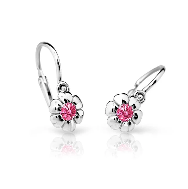 Dětské náušnice z bílého zlata ryzosti 585/000. Povrch náušnic je leštěný. Náušnice s ozdobou květu. Ve středu květu je kamínek. Rozměry náušnice najdete zobrazené na podpůrném obrázku. Náušnice mají bezpečnostní dětské zapínání zabraňující snadnému otevření a následné ztrátě náušničky. Krásné dětské náušnice od českého výrobce CUTIE JEWELLERY. Uvedená cena za 1 pár.