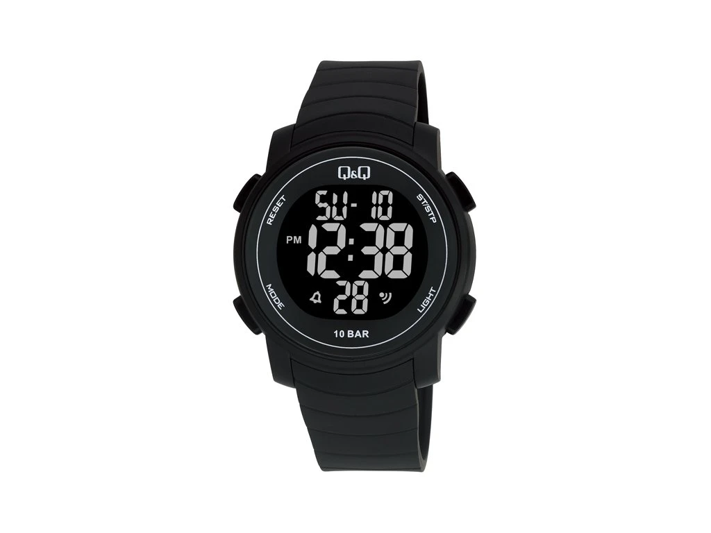Pánské digitální hodinky. Průměr pouzdra 44mm, výška hodinek 14mm. LCD podsvícený display má průměr 36mm. Hodinky jsou vybavené těmito funkcemi: den v týdnu, kalendář, stopky, alarm, formát zobrazení času 12/24. Hodinky jsou voděodolné na úrovni 10ATM, je možné hodinky používat při plavání, nebo potápění se šnorchlem. Řemínek se zapínáním na jednoduchou sponu je široký 20mm.