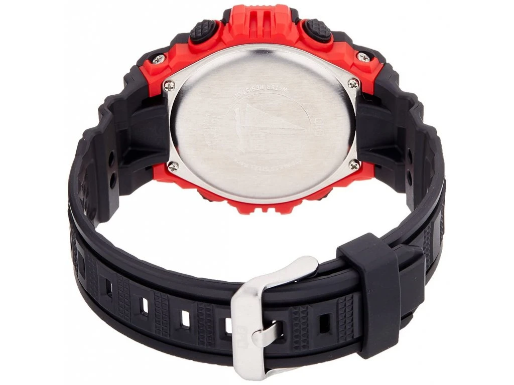 Pánské digitální hodinky. Průměr pouzdra 48mm, výška hodinek 16mm. LCD podsvícený display má průměr 30mm. Hodinky jsou vybavené těmito funkcemi: den v týdnu, kalendář, stopky, alarm, odpočet, formát zobrazení času 12/24. Hodinky jsou voděodolné na úrovni 10ATM, je možné hodinky používat při plavání, nebo potápění se šnorchlem. Řemínek se zapínáním na jednoduchou sponu je široký 18mm.