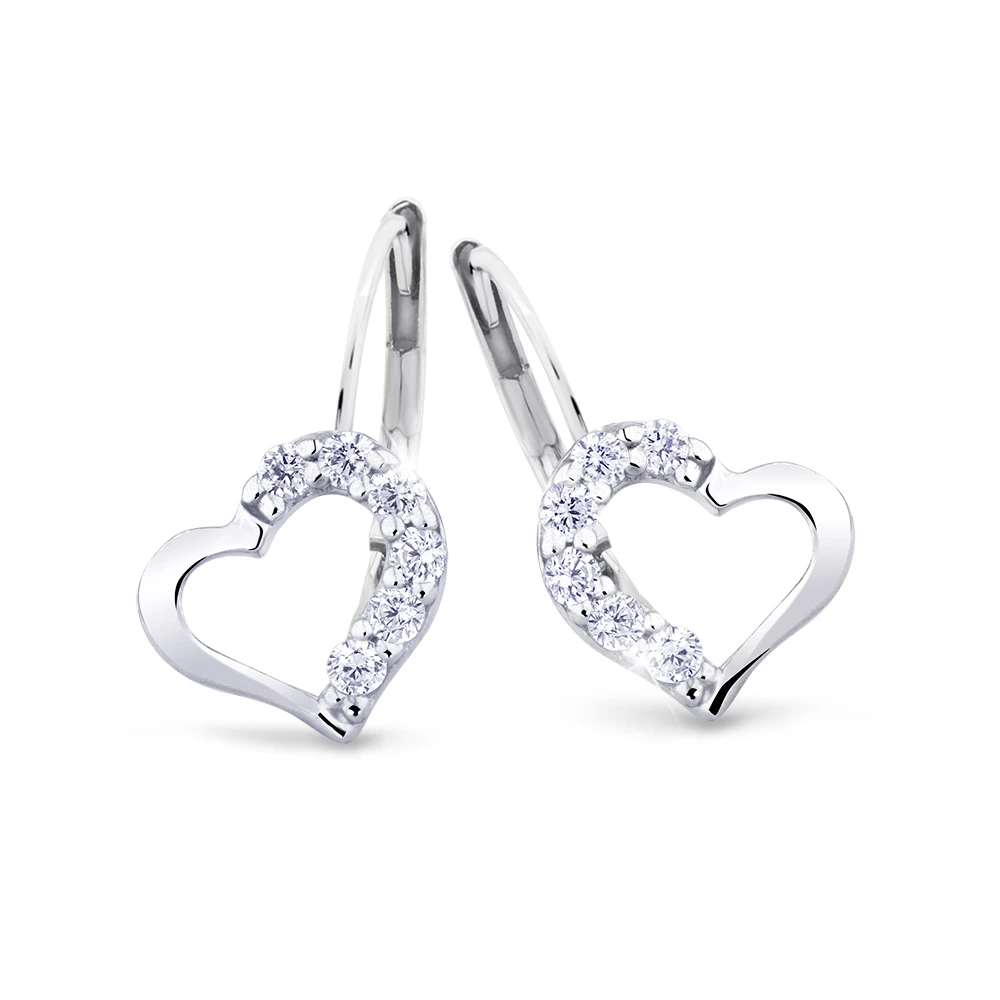 Dívčí náušnice z bílého zlata srdíčka C2757B-KL-Bílá