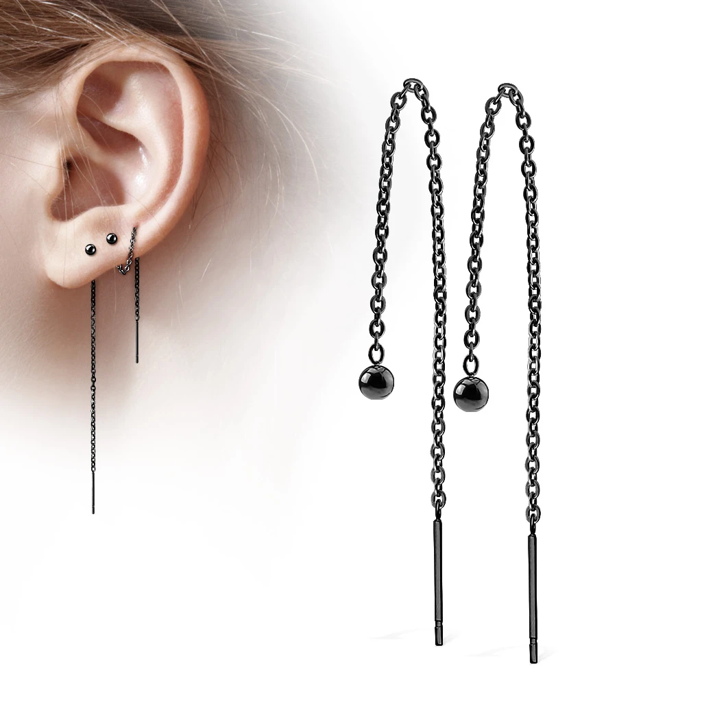 Dlohé ocelové náušnice. Provlékací náušnice s průměrem 0,8mm. Délka náušnic 75mm.