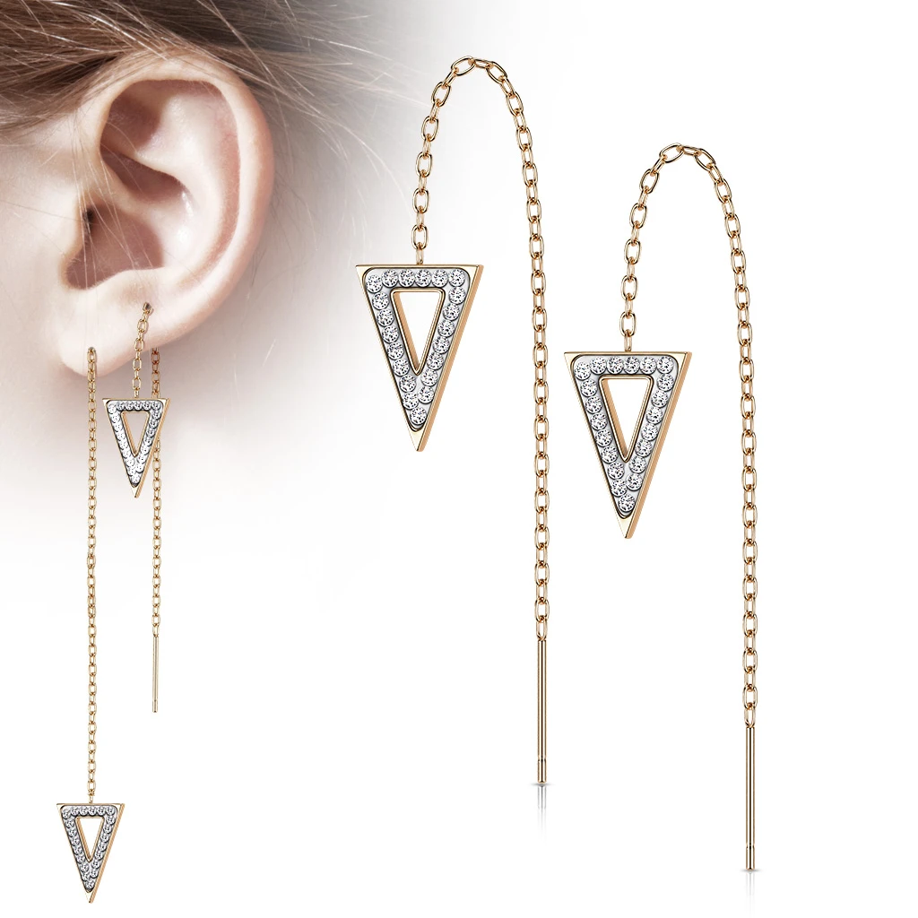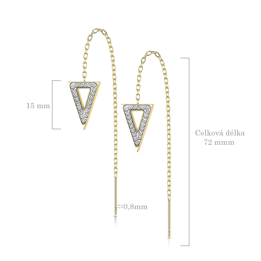 Visací náušnice z chirurgické oceli s kamínky. Celková délka náušnice s řetízkem 72mm. Rozměry náušnic najdete zobrazené na podpůrné fotografii.