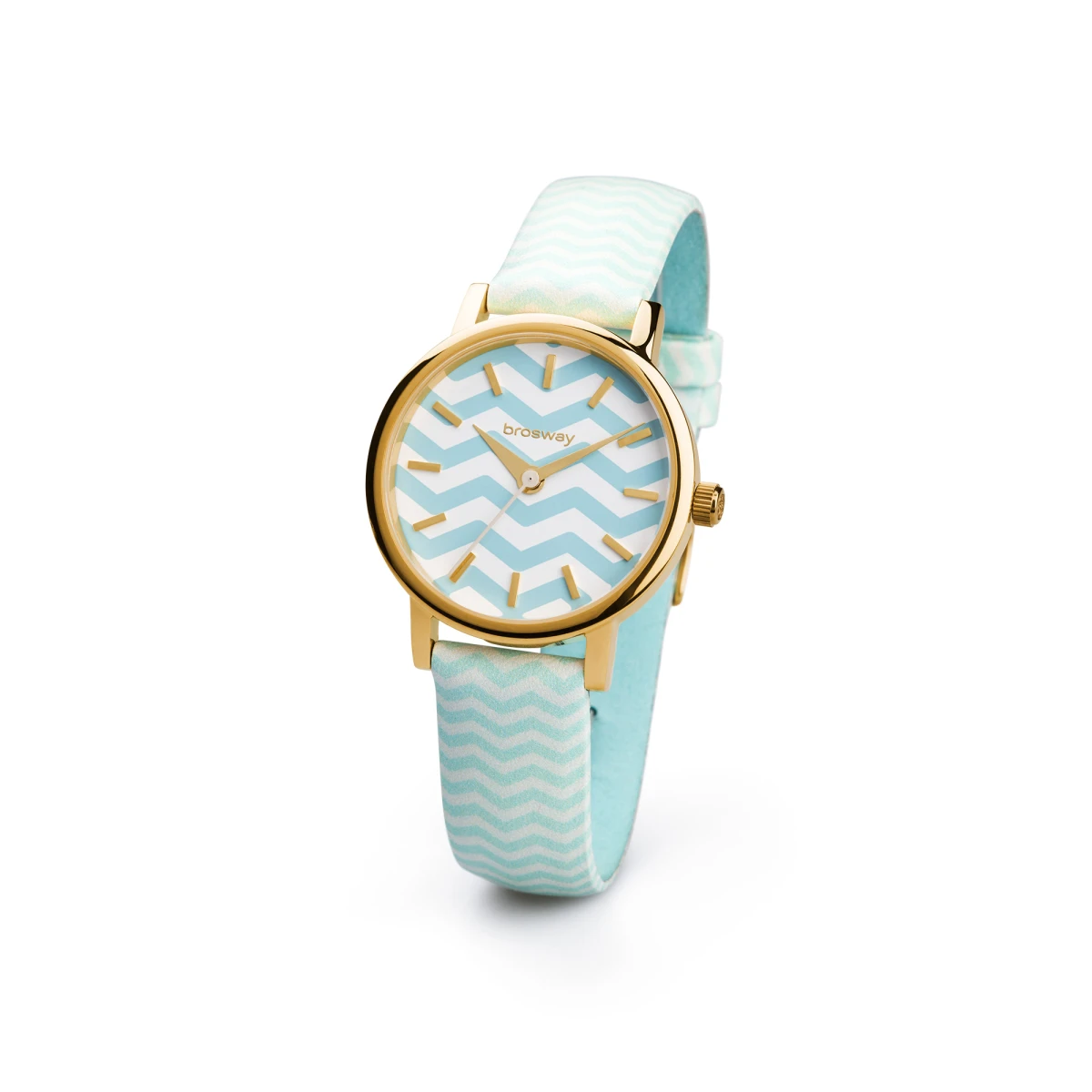Dámské hodinky Brosway z kolekce GITANA. Hodinky pohání bateriový strojek Miyota 2035. Barevný ciferník s hodinovou, minutovou a vteřinovou ručičkou. Ocelové pouzdro má zlatou úpravu PVD, průměr pouzdra 34mm. Sklíčko je minerální. Řemínek z pravé kůže se zapínáním na jednoduchou sponu.