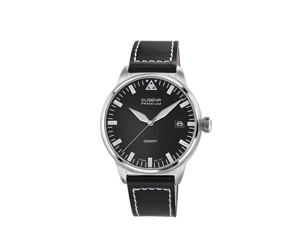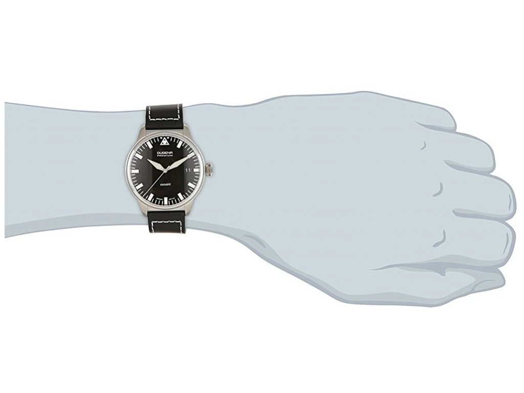 Pánské hodinky na ruku z chirurgické oceli s koženým řemínkem se zapínáním na přezku, sklíčko hodinek je safírové. Kulatý černý ciferník s indexy. Hodinky jsou vybavené datumkou, hodinovou, minutovou a vteřinovou ručkou. Průměr pouzdra hodinek 42mm, výška pouzdra 12mm. Pouzdro hodinek je vyrobené z leštěné chirurgické oceli. Chod hodinek zajišťuje spolehlivý bateriový strojek. Hodinky jsou vodotěsné na úrovni 5 ATM. Na všechny hodinky Dugena platí záruka v délce 36 měsíců. Hodinky jsou dodávané v dárkové krabičce s logem.
