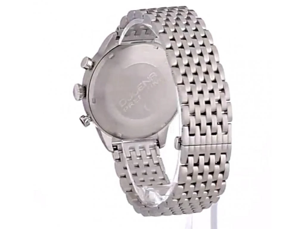 Pánské hodinky na ruku z chirurgické oceli, sklíčko hodinek je safírové. Kulatý černý ciferník s indexy. Hodinky jsou vybavené datumkou, hodinovou, minutovou a vteřinovou ručkou, chronografem. Průměr pouzdra hodinek 42mm, výška pouzdra 12mm. Pouzdro hodinek a náramek jsou vyrobené z leštěné chirurgické oceli. Chod hodinek zajišťuje spolehlivý bateriový strojek. Hodinky jsou vodotěsné na úrovni 5 ATM. Na všechny hodinky Dugena platí záruka v délce 36 měsíců. Hodinky jsou dodávané v dárkové krabičce s logem.