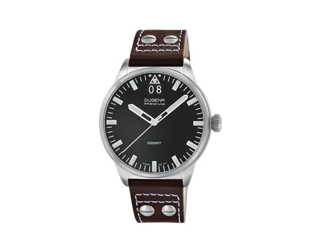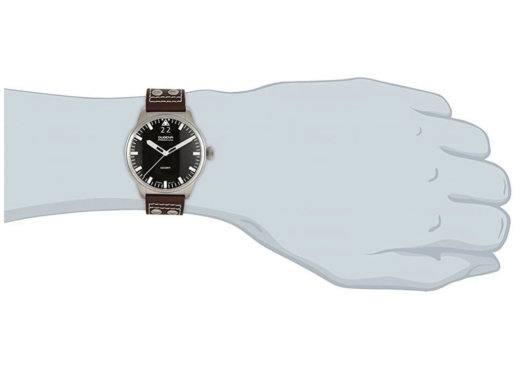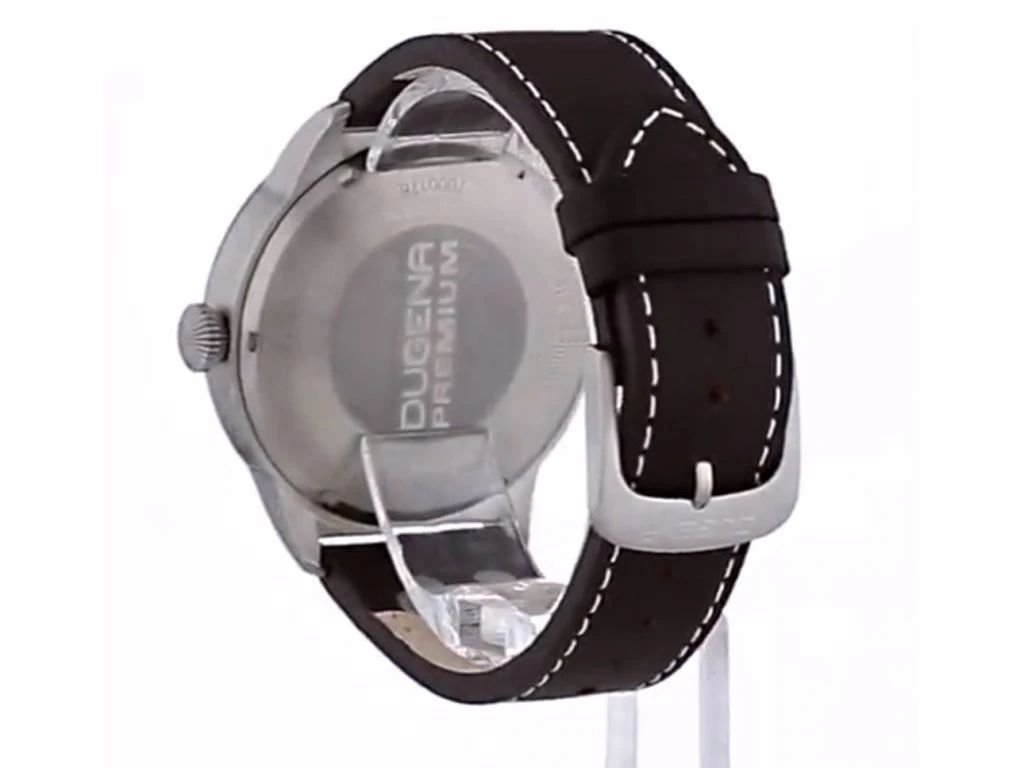 Pánské hodinky na ruku z chirurgické oceli s koženým řemínkem se zapínáním na přezku, sklíčko hodinek je safírové. Kulatý černý ciferník s indexy. Hodinky jsou vybavené datumkou, hodinovou, minutovou a vteřinovou ručkou. Průměr pouzdra hodinek 45mm, výška pouzdra 15mm. Pouzdro hodinek je vyrobené z leštěné chirurgické oceli. Chod hodinek zajišťuje spolehlivý bateriový strojek. Hodinky jsou vodotěsné na úrovni 5 ATM. Na všechny hodinky Dugena platí záruka v délce 36 měsíců. Hodinky jsou dodávané v dárkové krabičce s logem.