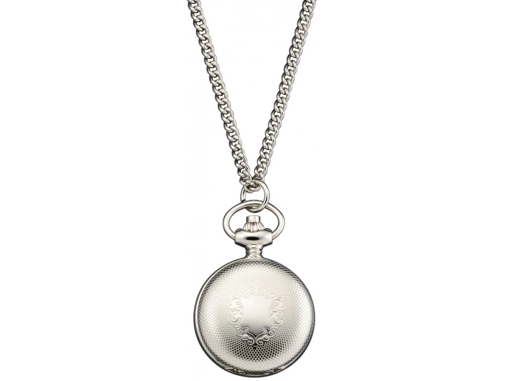 Hodinky na řetízku na krk pro ženy. Kovové tělo hodinek má průměr 26mm, sklíčko hodinek je plastové. Hodinky mají bílý ciferník s římským číselníkem, hodinovou a minutovou ručku. Provoz hodinek zajišťuje spolehlivý bateriový strojek Miyota 2025. Kovový řetízek se zapínáním na karabinu je dlouhý 70cm a hodinky tak lze pohodlně převléct přes hlavu bez nutnosti manipulace s karabinkou. Do erbu na víčku hodinek lze vyrýt např. monogram.