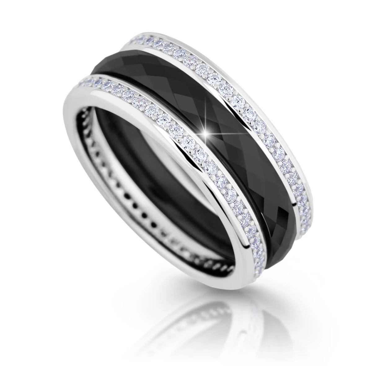 Keramický prsten se zirkony Cerafi Kombinacione Nero 126