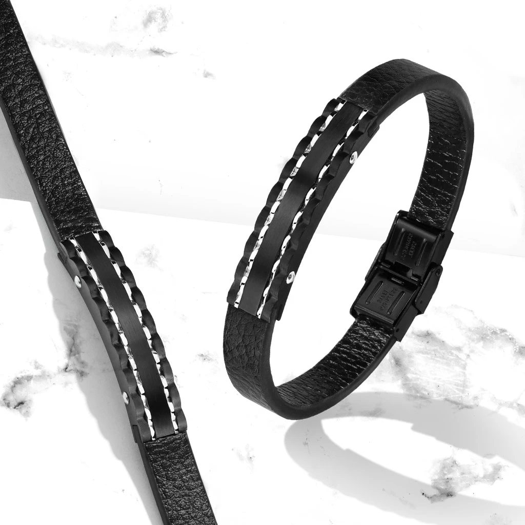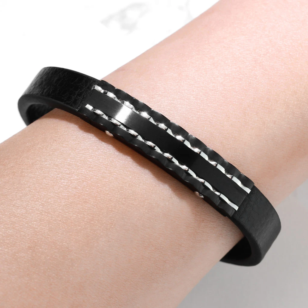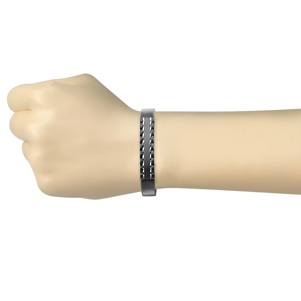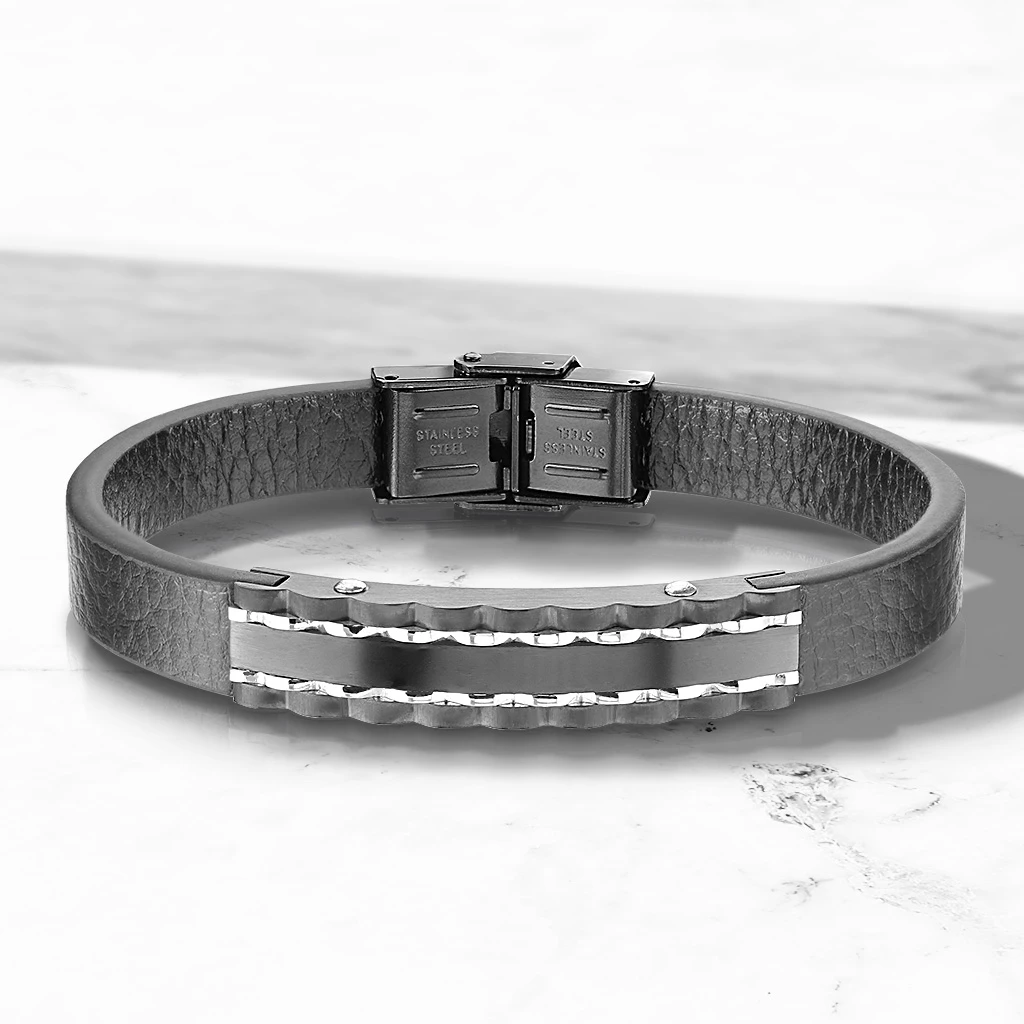 Elegantní pánský náramek, který spojuje pravou kůži a chirurgickou ocel v ojedinělý celek.