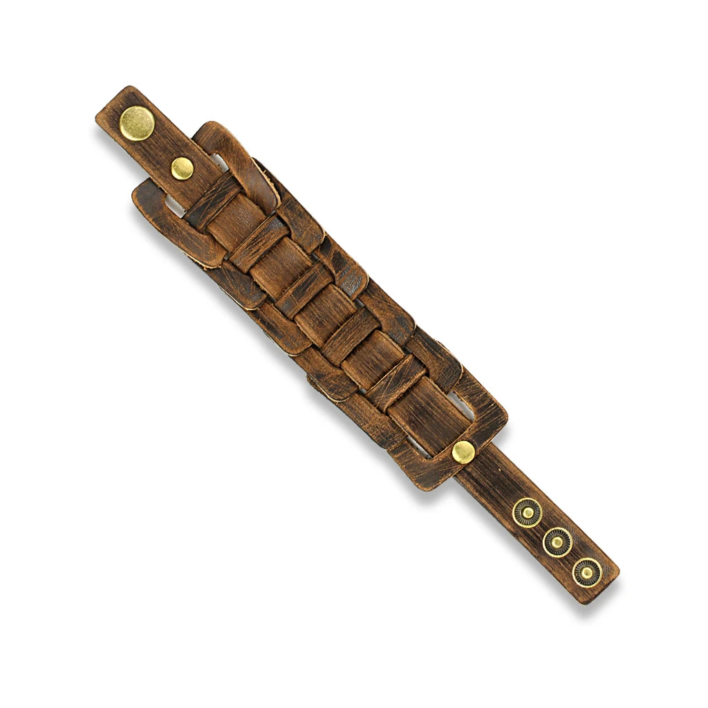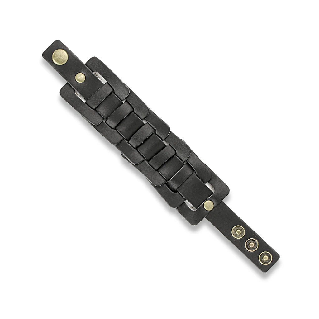 Kožený náramek se zapínáním na patentku. Náramek je široký 40mm. Patentní zapínání lze zapínat na úrovni délek 17,19,20cm.