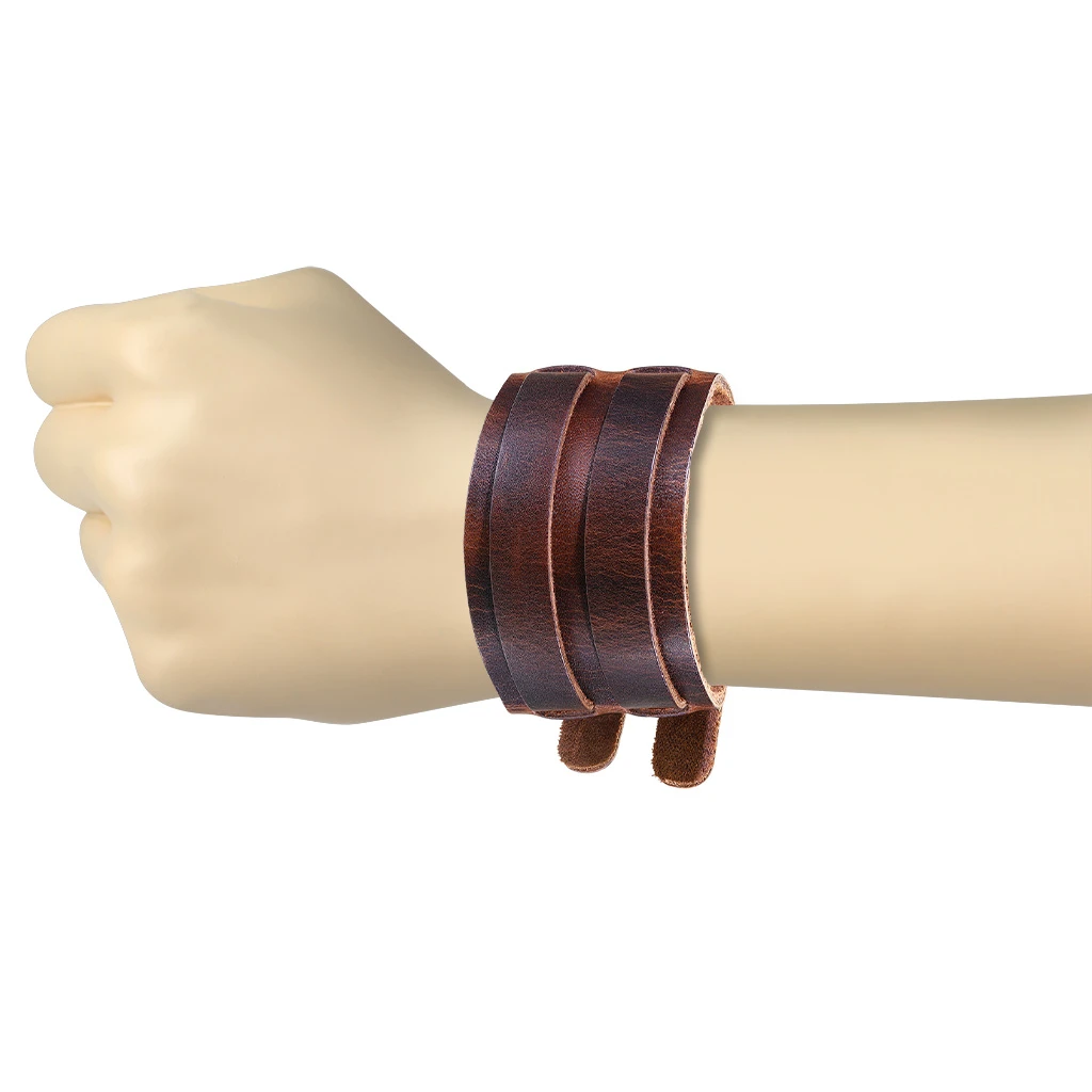 Kožený náramek pro muže s dvojitým zapínáním. Nátepník je široký 50mm. Dvojité zapínání na jednoduchou přezku lze zapínat na úrovni délek 20,21,22,23,24cm.