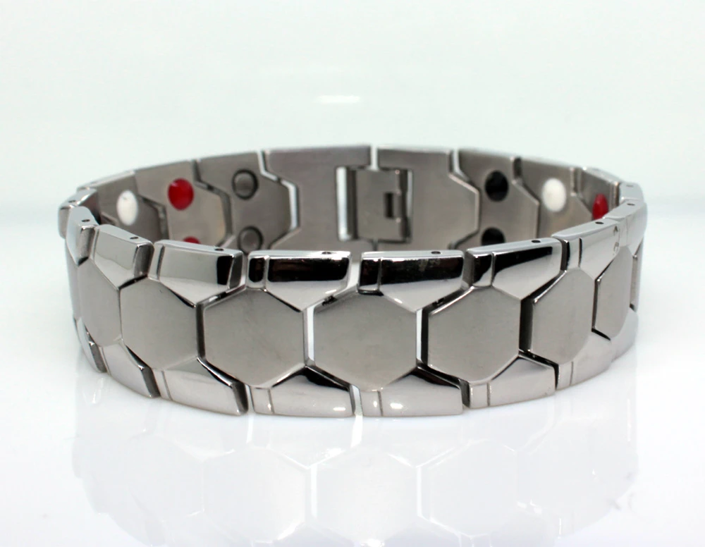 Magnetický náramek na ruku z chirurgické oceli. Jako všechny šperky zhotovené z materiálu chirurgická ocel, je také tento náramek odolný proti poškození, nevyvolává magnetické reakce, neoxiduje, chirurgická ocel nemění barvu. Díky těmto vlastnostem a přijatelné ceně se ocelové šperky těší stále značně vysoké popularitě ve stále se rozšiřujících řadách spokojených uživatelů.