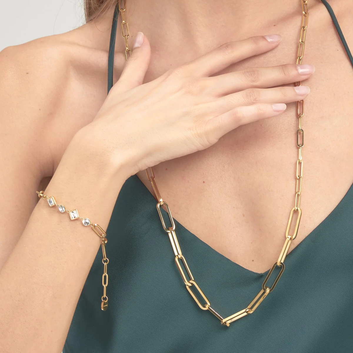 Dlouhý dámský náhrdelník z kolekce EMPHASIS. Náhrdelník je vyrobený z pozlacené chirurgické oceli 316L. Pozlacení náhrdelníku je provedeno technologií PVD. Náhrdelník je dlouhý 80cm.