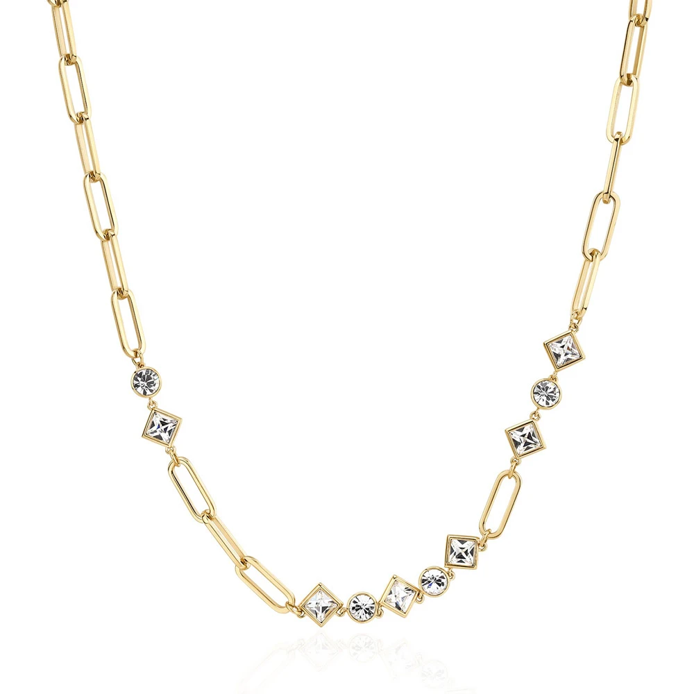 Dámský náhrdelník z kolekce EMPHASIS. Náhrdelník je vyrobený z pozlacené chirurgické oceli 316L doplněné o zářivé krystaly. Pozlacení náhrdelníku je provedeno technologií PVD. Délka náhrdelníku 45cm.