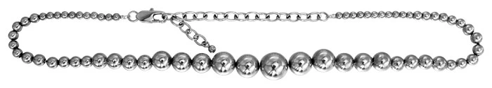 Dámský náhrdelník z chirurgické oceli. Náhrdelník je složený z ocelových korálků s leštěným povrchem. Korálky mají následující průměry 14,12,10,8,6,4mm. Náhrdelník má variabilní délku v rozmezí 42-52cm.