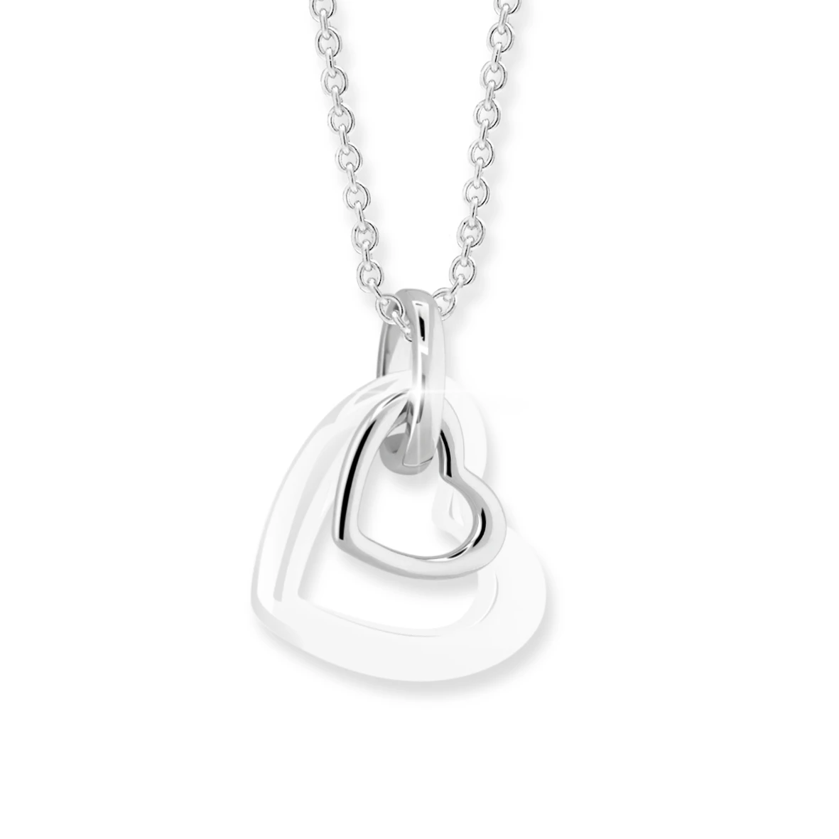Dámský náhrdelník ze stříbra 925/1000 a hi-tech keramiky. Bílé keramické srdce má hladký lesklý povrch, stříbrné srdíčko a závěsné očko mají porhodiovaný povrch. Úprava rhodiováním zaručuje dokonalý a dlouhotrvající vzhled šperku. Rozměr přívěsku: 15x13mm. Náhrdelník je dlouhý 44cm.