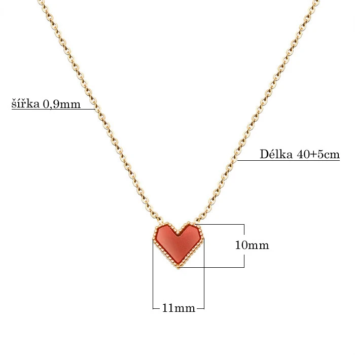 Náhrdelník se srdíčkem z chirurgické oceli pro ženy. Povrch náhrdelníku je leštěný. Zapínání náhrdelníku je karabinové. Ocelový náhrdelník dlouhý 40-45cm.