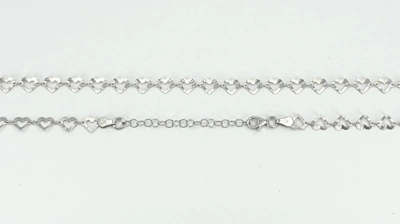 Náhrdelník ze stříbra ryzosti 925/1000. Povrch náhrdelníku je porhodiovaný. Úprava rhodiováním dodává náhrdelníku jasnou barvu s leskem, chrání povrch šperku proti poškrábání, náhrdelník tak bude mít dlouhou dobu bezvadný vzhled. Srdíčka mají rozměr 6x6mm. Náhrdelník má zapínání na karabinku. Délku náhrdelníku lze nastavit v rozmezí 42-47cm.